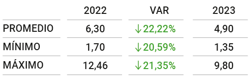 Al cierre del año 2023, el IPC fue de 211,4% según datos del INDEC, mientras que las adecuaciones tarifarias de los asociados de AECA, si bien en algunos casos lograron acercarse a ese nivel, quedaron en su gran mayoría por debajo del índice, siendo el promedio de ajuste del 193,6 % anual según datos relevados por esta asociación entre sus 34 asociados. Por segundo año consecutivo la facturación no logró acompañar el crecimiento de precios, quedando nuevamente casi un 18% abajo.