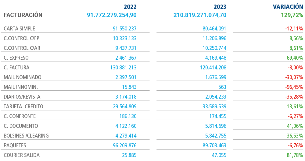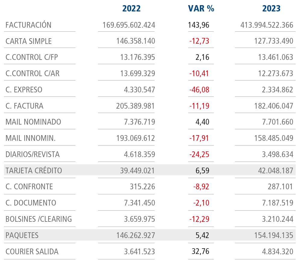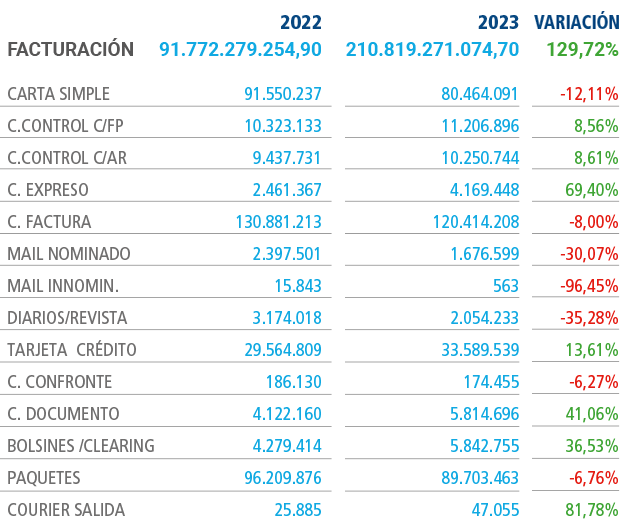Al igual que el año anterior, el crecimiento de la facturación se debe al fenómeno inflacionario más que a un crecimiento real de la actividad que en términos de volumen sigue con tendencia a la baja de piezas postales simples y el incremento de piezas con mayor valor agregado, como la logística de última milla.